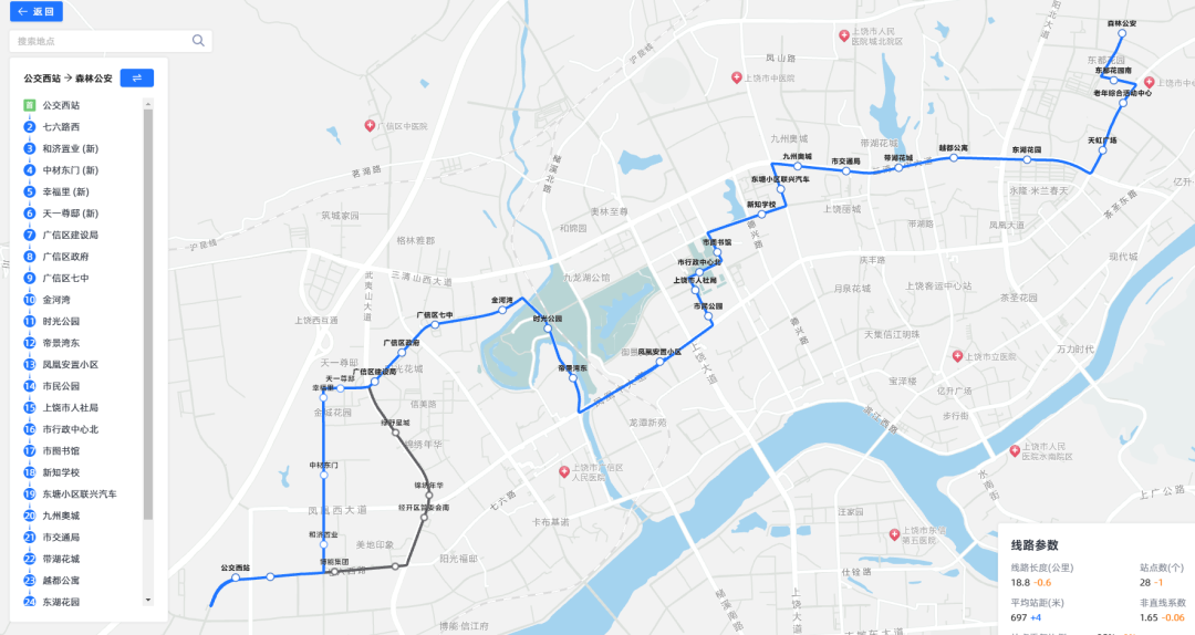 取消部分武夷山大道、七六路路段线路走向,取消停靠“绿野星城、锦绣年华、经开区管委会南、美的印象、博能集团”公交站点,绕行吉阳西路、兴园大道路段,临时增加停靠“天一尊邸、幸福里、中材东门、和济置业”公交站点,参考下图蓝线: