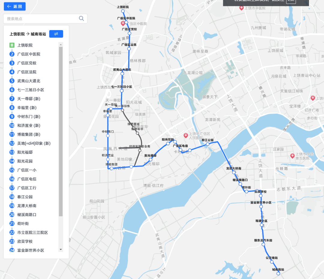 根据广信交警于2024年12月25日发布的《关于武夷山大道部分路段临时封闭施工期间实施交通管制的公告》,武夷山大道(工业七路-凤凰西大道-七六路-惟义路)部分路段2024年12月27日至2025年9月30日期间将阶段性实行单侧交通管制,由于管制期间单侧站点无法停靠,往返道路变窄,公交车辆车体较大,行道树生长茂盛,对向站点停靠同样存在较大安全隐患,我司决定管制期间途经的16路、T16路、116路、20路、23路临时绕行,具体情况如下: