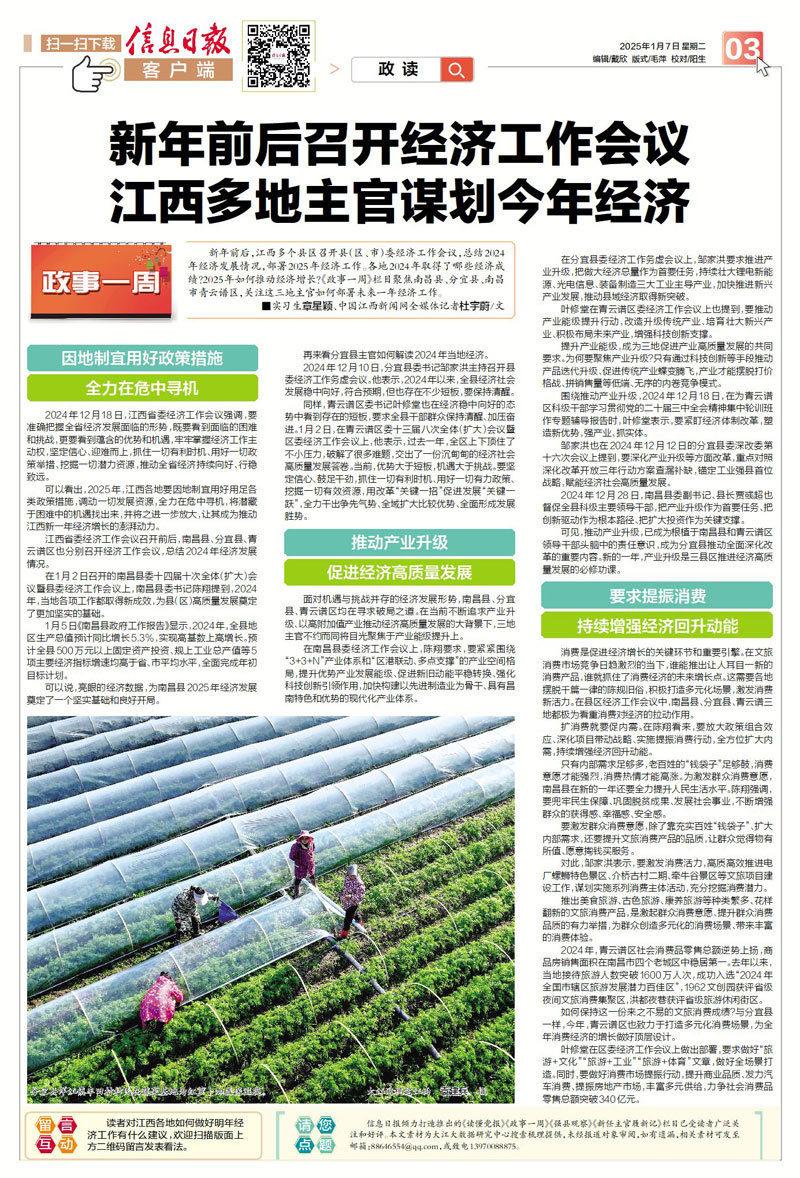 江西省委经济工作会议召开前后,南昌县、分宜县、青云谱区也分别召开经济工作会议,总结2024年经济发展情况。