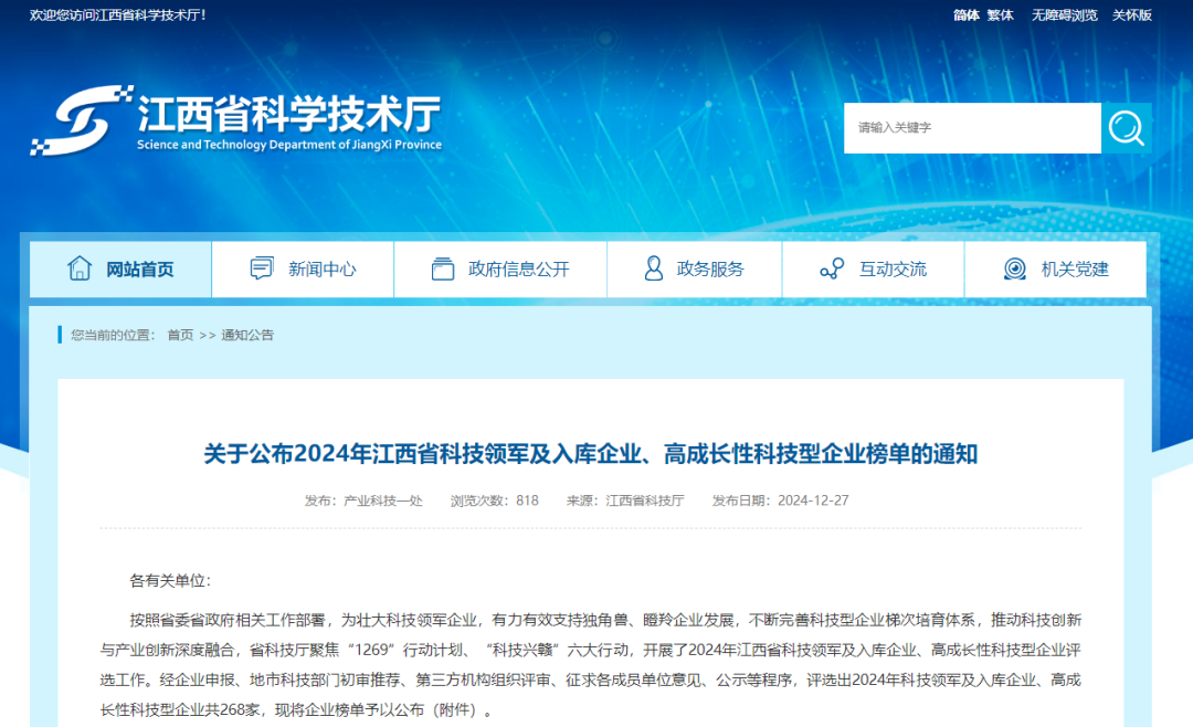 在本次公布的榜单中,我市表现亮眼,共有47家企业成功入选,其中包括江西济民可信集团有限公司、江西兆驰半导体有限公司、晶能光电股份有限公司等企业。值得一提的是,南昌高新区入选2024年江西省科技领军及入库企业、高成长性科技型企业的共有25家,连续六年在全省国家高新区中位列第一。据统计,算上此次新晋企业,南昌市累计已有260家(次)企业获此殊荣。