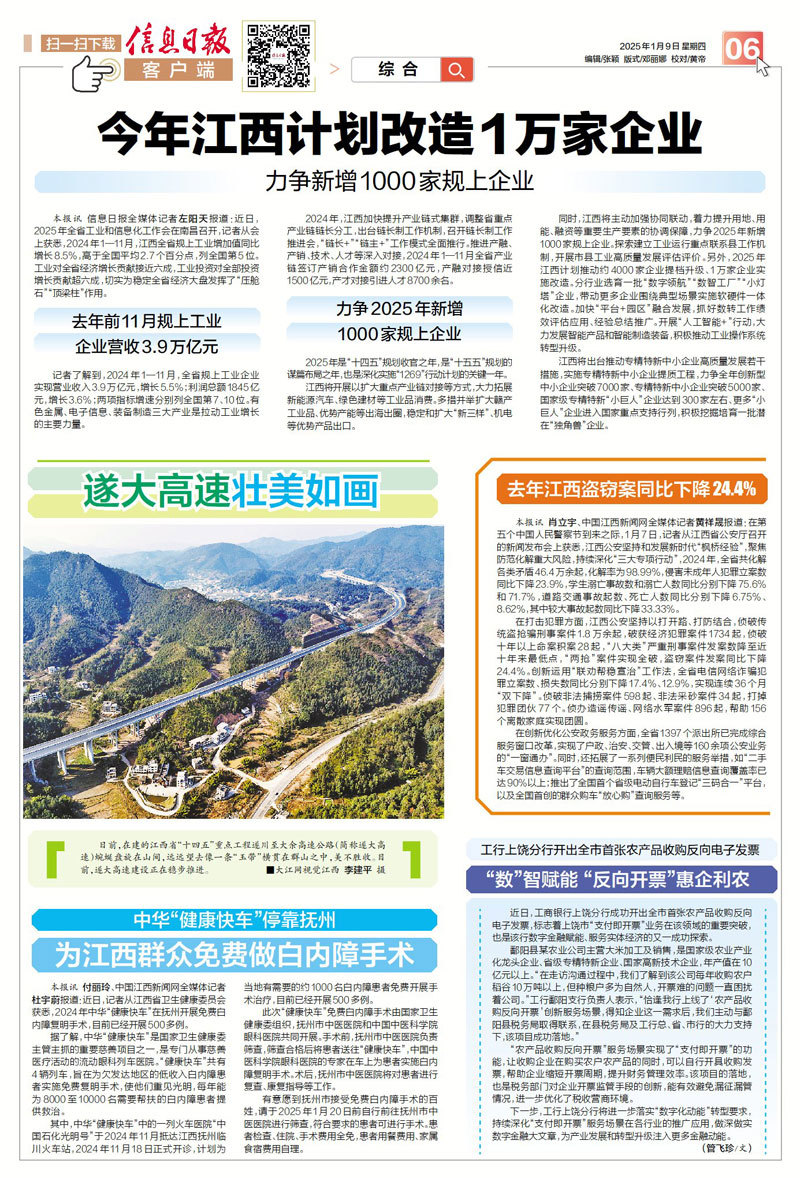 同时,江西将主动加强协同联动,着力提升用地、用能、融资等重要生产要素的协调保障,力争2025年新增1000家规上企业。探索建立工业运行重点联系县工作机制,开展市县工业高质量发展评估评价。另外,2025年江西计划推动约4000家企业提档升级、1万家企业实施改造。分行业选育一批“数字领航”“数智工厂”“小灯塔”企业,带动更多企业围绕典型场景实施软硬件一体化改造。加快“平台+园区”融合发展,抓好数转工作绩效评估应用、经验总结推广。开展“人工智能+”行动,大力发展智能产品和智能制造装备,积极推动工业操作系统转型升级。