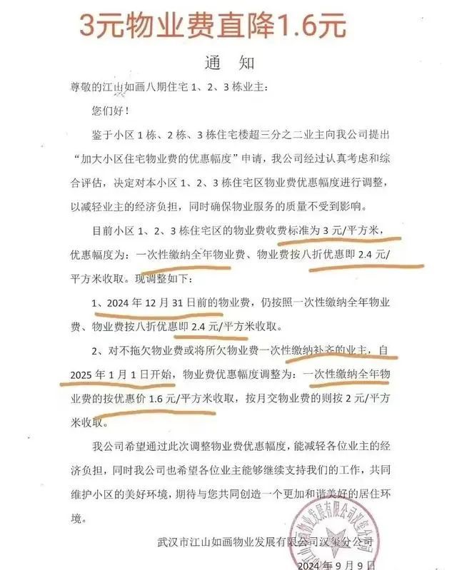 2025年,武汉多个小区集体宣布降低物业费。