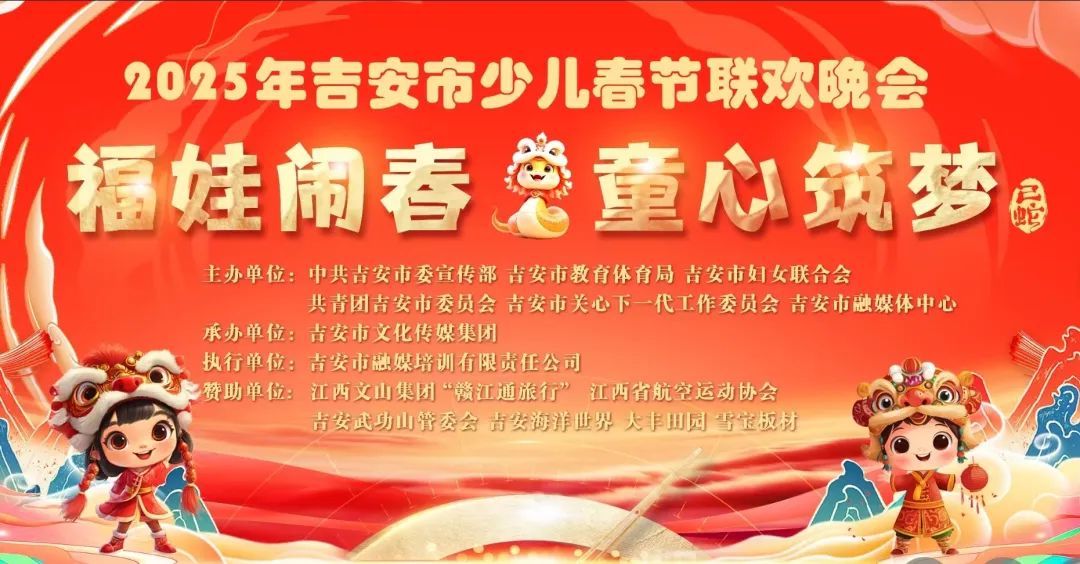 祥龙回首辞旧岁,金蛇起舞迎新年。为展现我市少儿艺术风采,丰富孩子们的文化艺术生活,提升我市青少年儿童的艺术水平,引领少年儿童才艺创新发展,共筑少年儿童的艺术梦、爱国梦、强国梦,营造热闹喜庆、欢乐祥和的春节氛围,“福娃闹春 童心筑梦”2025年吉安市少儿春节联欢晚会即将正式演出录制。