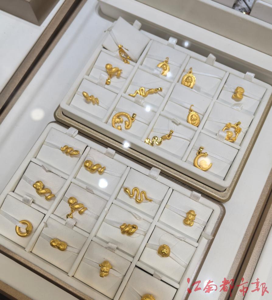 江南都市报讯 全媒体记者赵琼摄影报道:临近春节,黄金市场迎来销售旺季。连日来,记者走访南昌多家金店了解到,蛇元素黄金饰品备受青睐,超小克重的黄金贴纸开始流行。
