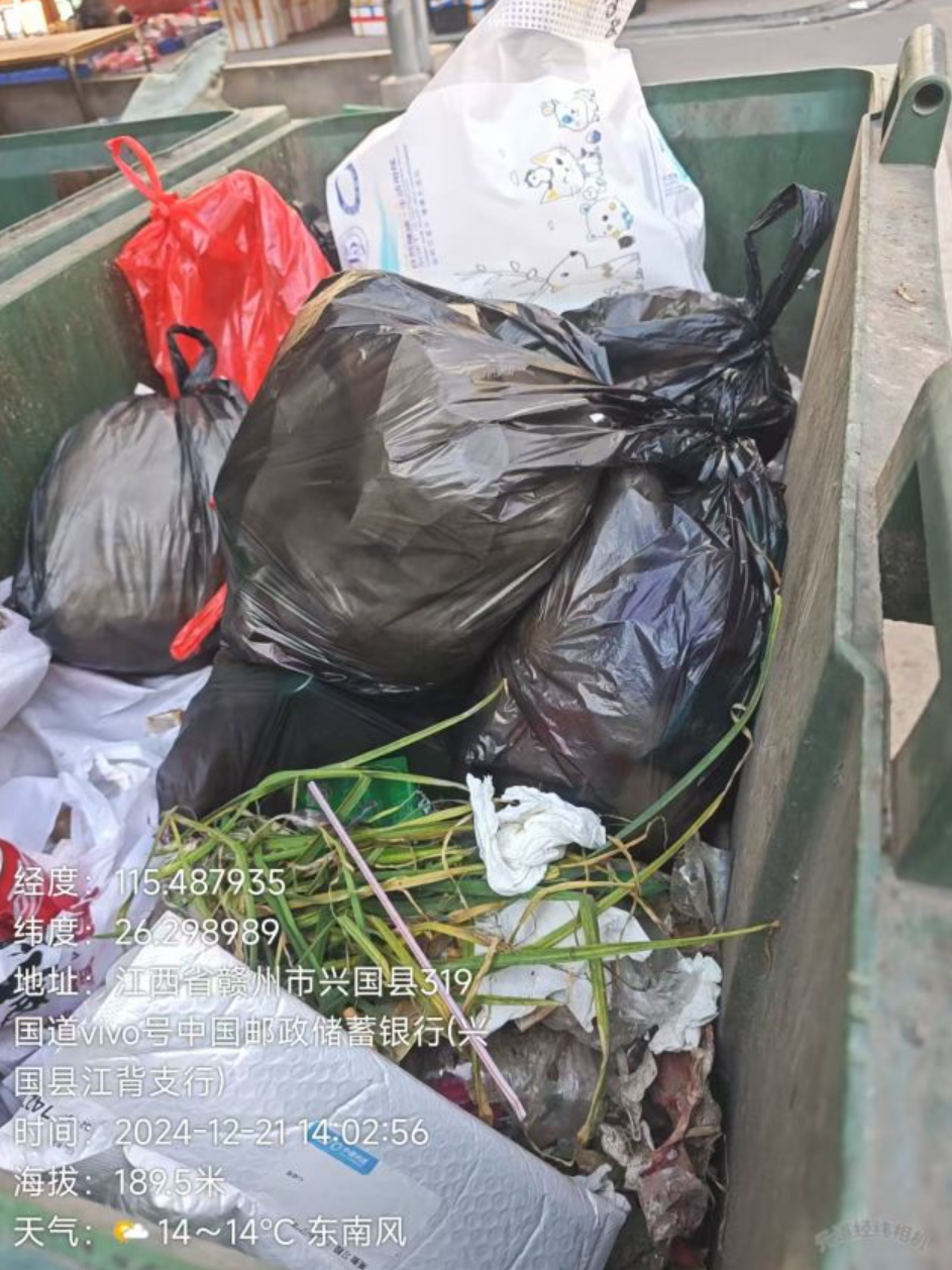 赣州兴国县盈合环境卫生管理有限公司承接了县城内各乡镇街道农贸市场周围垃圾清理工作,但垃圾清理工作越来越糟糕,地面上、垃圾桶里的垃圾不及时清扫、清运,希望相关部门严肃处理,保证干净清爽整洁的街道,打造宜居宜业的一个舒适干净的环境。