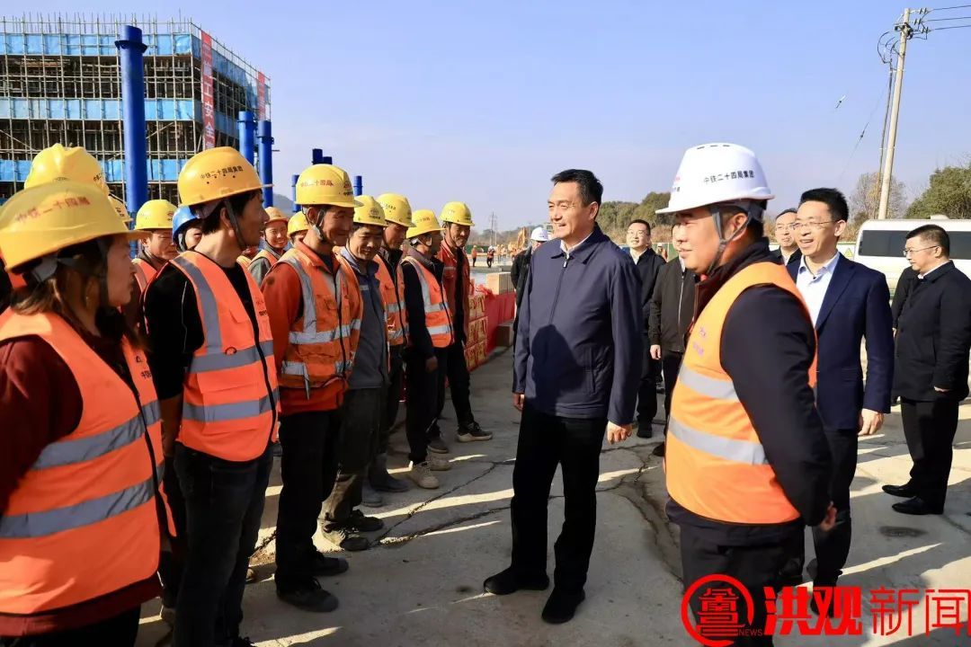 调研中,李红军先后察看了云翔大道、西二绕昌北枢纽A 匝道、汇贤大桥等项目建设情况,听取有关工作汇报,详细了解施工细节、施工安排、交通组织等,与一线建设者面对面交流,感谢大家的辛勤付出,勉励大家继续坚守岗位,保持攻坚状态,全力推动项目建设提速,共同努力把城市建设得更美好。李红军叮嘱有关单位,要切实优化春节期间施工各项安排,用心用情用力做好服务保障,组织好一线建设者生产生活,让大家在南昌安心工作、开心过年。