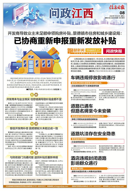 江西日报社大江大数据显示,1月20日,大江网《问政江西》共计收到帖文215条,其中,万载县住房和城乡建设局、宜春市袁州区市场监督管理局、金溪县人力资源和社会保障局、南城县公安局交警大队、吉安县教育体育局、上高县住房和城乡建设局、上饶市人力资源和社会保障局、德兴市自然资源局、南昌县交通运输局等单位给予了回复,《问政江西》栏目组对上述单位表示感谢。