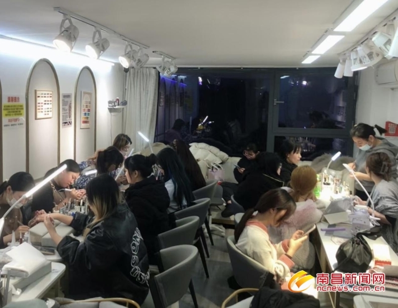 近日,记者来到位于红谷滩区万达金街的一家美甲美睫店内,记者看到,店内座无虚席,有的美甲师们正在给顾客做指甲,有的正忙着选择美甲款式,楼上的包厢内还有几名顾客正在种睫毛。