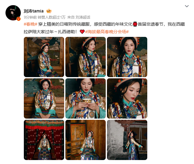 在社交平台晒出多张身穿藏服的照片