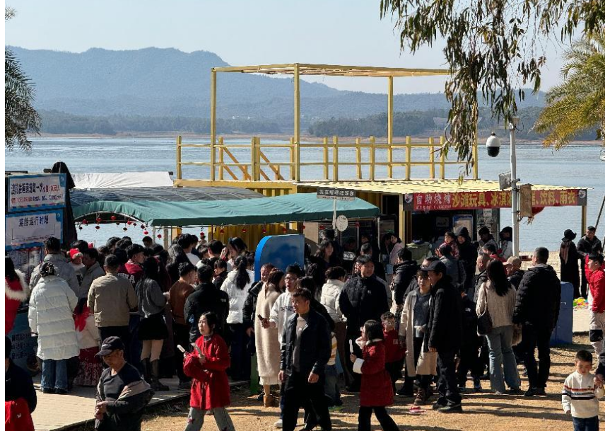白鹤湖嘻嘻哩生态水世界备受游客青睐,万方银滩上亲子游客在玩沙赏景,童趣王国里孩子们的欢笑声此起彼伏、萌宠岛上可爱的小动物们憨态可掬、奇幻列车载着大家开启奇妙的冒险之旅,30+互动娱乐项目全面营业,让大家欢度快乐假期。让人更期待的是,白鹤湖明天将开启限定的“异域春节之旅”,傣族春节仪式将一一亮相,版纳新春民俗重磅出场,更有孔雀舞、竹筒舞、甩发舞等民族表演轮番上演,给你满满的“春节仪式感”,让你不出鹰潭,就能体验到不一样的春节风情。