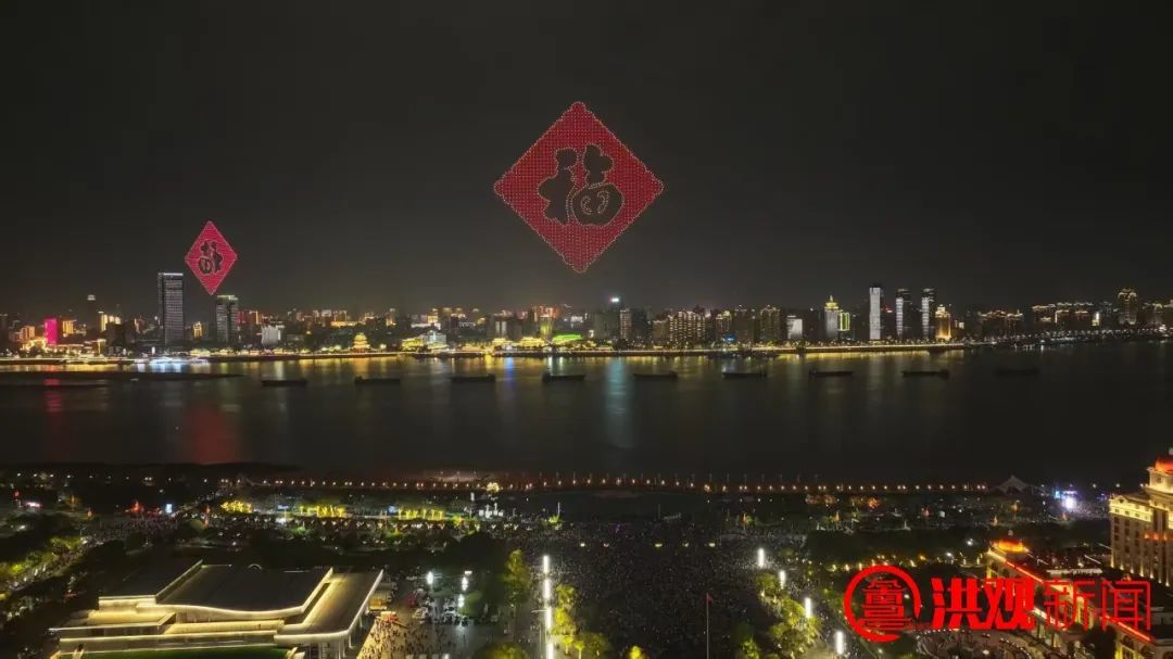 以“鸿运当头”“花满洪城”“瑞气盈门”“俊采星驰”“洪都盛景”等为名的烟花陆续升空,一幅幅壮丽的画面在夜空中交织,展现了一片诗意的热土。
