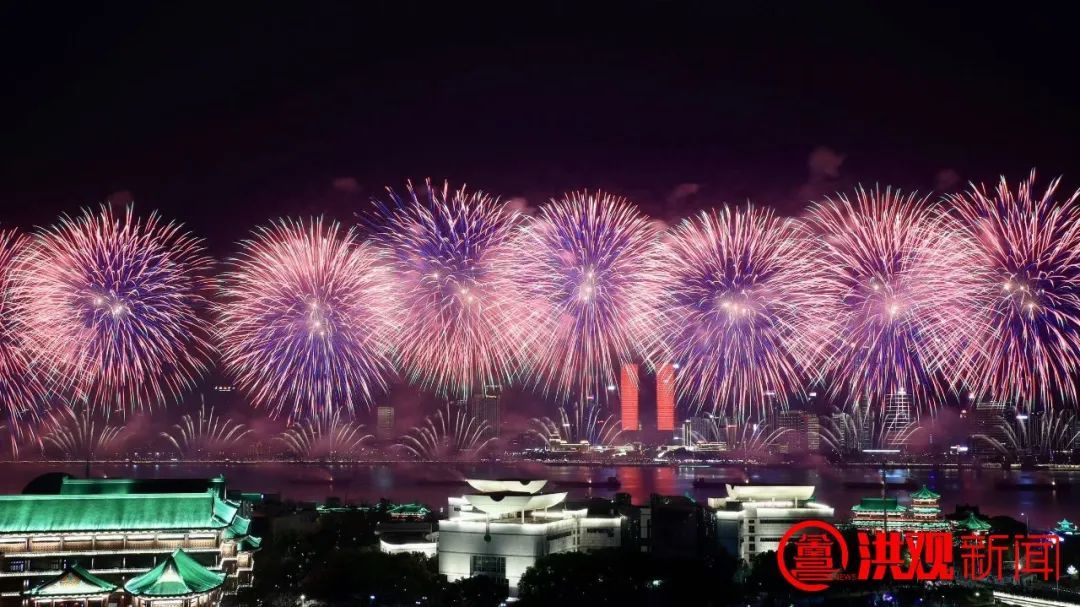 美轮美奂的烟花点亮了南昌夜空,