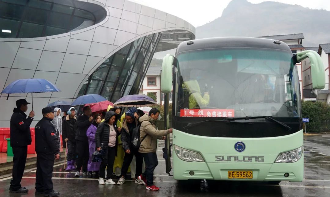 游客在转运点有序排队