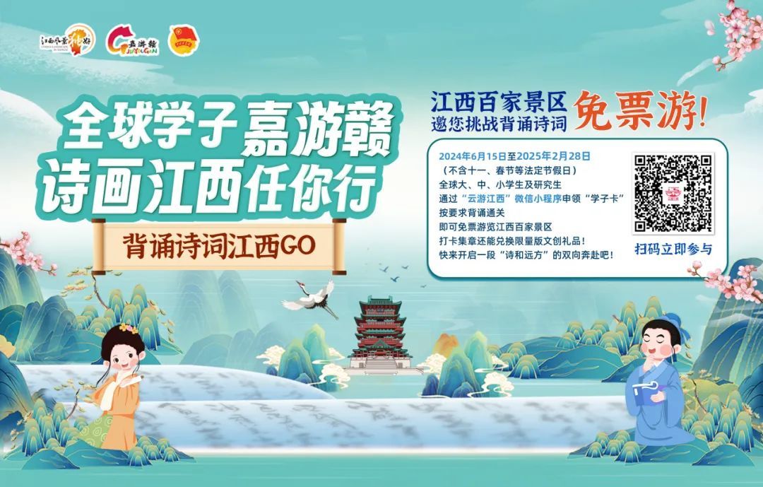 申领学子卡并成功挑战背诵《滕王阁序》全文,可免门票进入滕王阁主景区,并同时点亮南昌安义古村群景区、厚田沙漠、南昌舰、汪山土库以及中盛山庄,享受这五个景区的优惠政策。