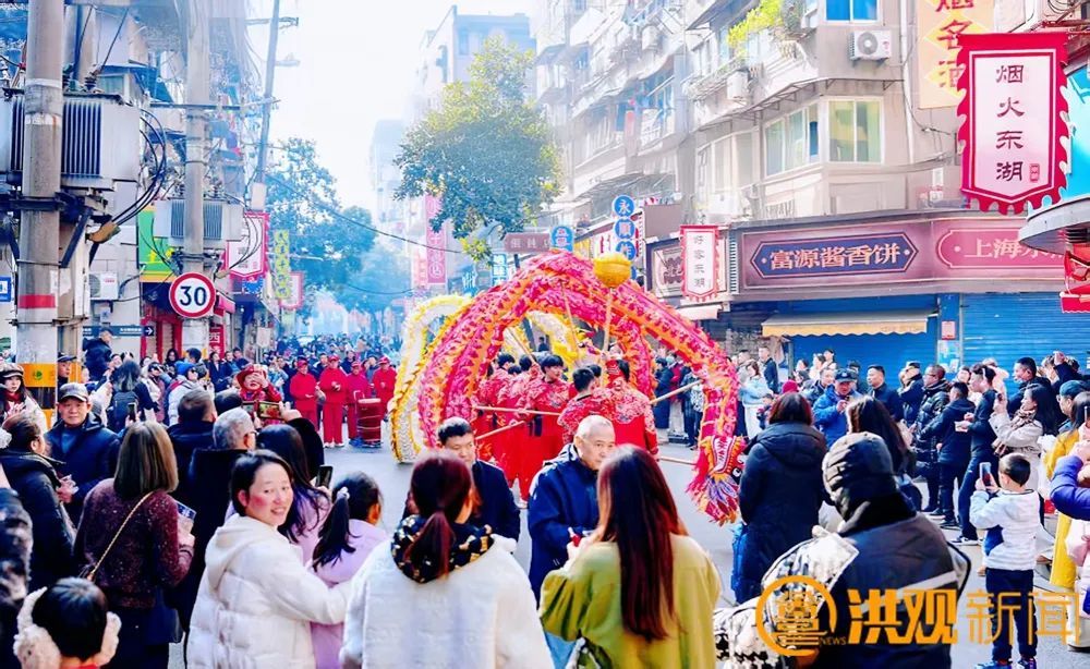 连日来,“民俗闹新春 欢彩七天乐”2025年东湖区民俗迎新春系列活动吸引众多市民游客,大家欢欢喜喜过大年。今年是滕王阁北扩工程投入使用和大士院美食街提升改造后首个春节,在这两个“网红”景点,每天都是人头攒动、热闹非凡。春节七天乐活动不仅有热闹喜庆的舞龙舞狮表演、龙灯巡游祈福,还有黄梅戏、采茶戏等经典剧目,新春颂歌、民俗荟萃、喜庆歌舞等应有尽有。