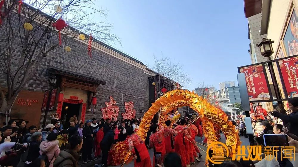 大年初一,西湖区“非遗贺新春 欢喜过大年”舞龙舞狮巡游活动在万寿宫历史文化街区古戏台前广场热闹开场。演出队伍从万寿宫历史文化街区前广场出发,沿着翠花街、珠宝街、棉花街、带子街、船山路等线路进行巡游表演,市民游客纷纷前来观看。