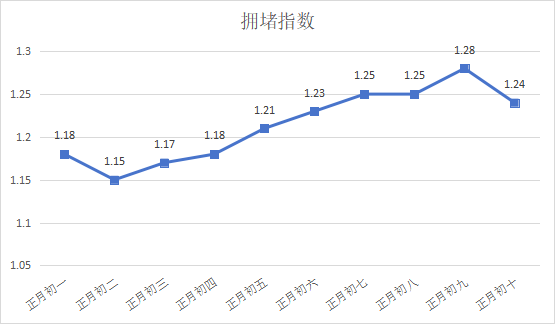 预计2月3日(正月初六)至2月4日(正月初七),将迎来第一波返程高峰。其中2月5日(正月初八)节后第一个工作日,与返程流量叠加,城区车流会明显增长,预计 8:00-11:00、14:00-20:00为出行高峰 ,拥堵延时指数较前几日略有增加,提醒广大出行者错峰出行。