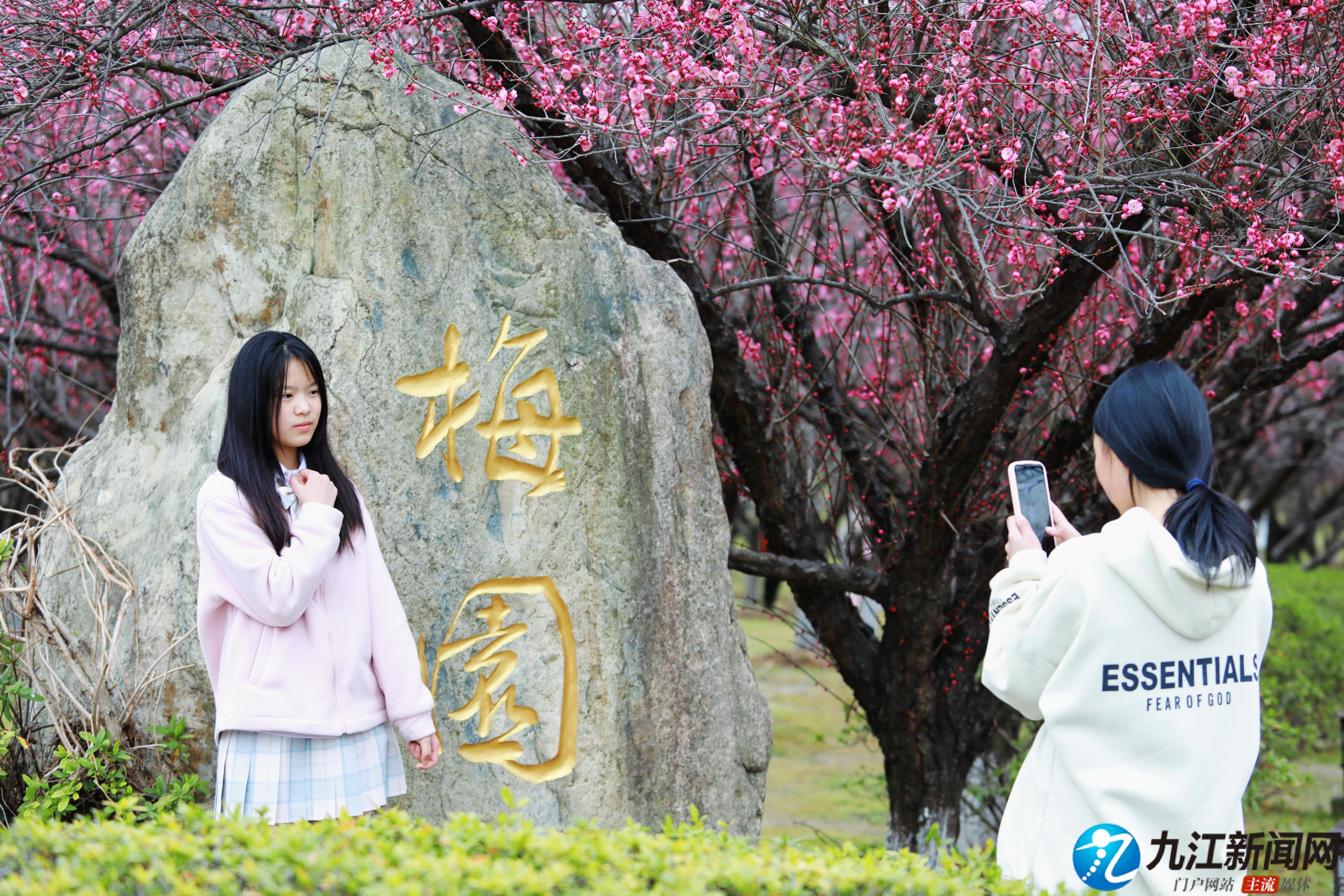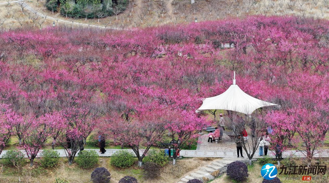 春来风光好,梅花别样红。2月6日,记者在濂溪区南山公园看到,梅园里一株株粉红色的梅花悄然绽放,星星点点的花朵汇成一道道亮丽的风景。游人们纷纷来到公园,赏梅观景,乐享“梅”好春光。
