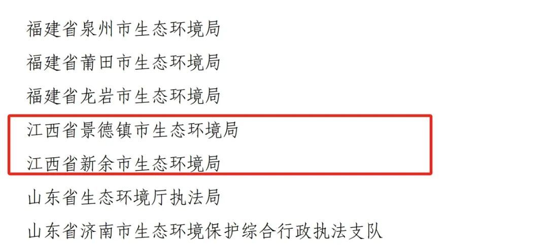 近日,生态环境部办公厅印发《关于表扬2023-2024年重点区域空气质量改善监督帮扶工作表现突出集体和个人的通报》,景德镇市生态环境局、新余市生态环境局荣获“2023-2024年重点区域空气质量改善监督帮扶工作表现突出集体”,黄晨峰、杨传水等15人荣获“2023-2024年重点区域空气质量改善监督帮扶工作表现突出个人”。