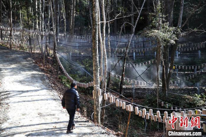 2月8日,走进位于江西省抚州市广昌县的旴江林场“储备林+菌+药”复合经营示范基地,这里是广昌林下经济产业园的核心区,目前该基地发展林下经济种植面积8100亩。其中,林下中药材种植面积7500亩,林下食用菌种植面积600亩。基地采取“公司+林场+农户”经营模式运作,带动周边220户农户积极参与种植,每户实现增收5000元人民币以上,提升了林地经济综合效益。中新社记者 刘占昆 摄