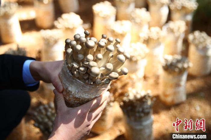 图为利用林下空间套种的食用菌鹿茸菇。中新社记者 刘占昆 摄