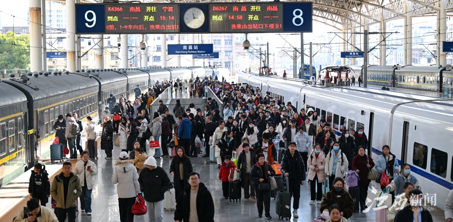 江西新闻客户端讯(江西日报全媒体记者张翰林)2月9日,南昌火车站春运返程客流持续保持高位运行,学生流和务工流不断攀升。