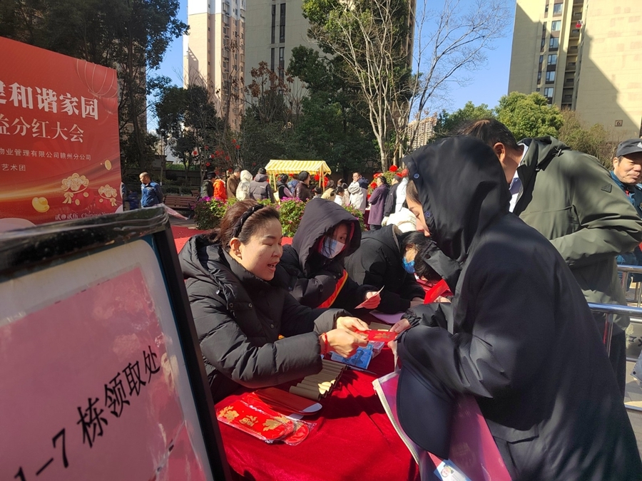 2月9日,章贡区中海东郡A区喜气洋洋,热闹非凡。一场公共收益分红大会在小区里举行,800余户业主共领取了12万元的公共收益分红。