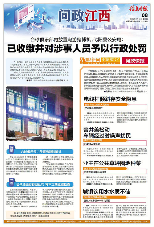 江西日报社大江大数据显示,2月11日,大江网《问政江西》共计收到帖文185条,其中,南昌县农业农村局、上犹县卫生健康委员会、于都县烟草专卖局、兴国县埠头乡人民政府、信丰县城市管理局、万载县仙源乡人民政府、吉安市公路建设和养护中心、新干县卫生健康委员会、吉安县人力资源和社会保障局、余干县人力资源和社会保障局、上饶市广丰区东阳乡人民政府、永修县住房和城乡建设局、鹰潭市住房公积金管理中心、浮梁县政务服务管理局等单位给予了回复,《问政江西》栏目组对上述单位表示感谢。
