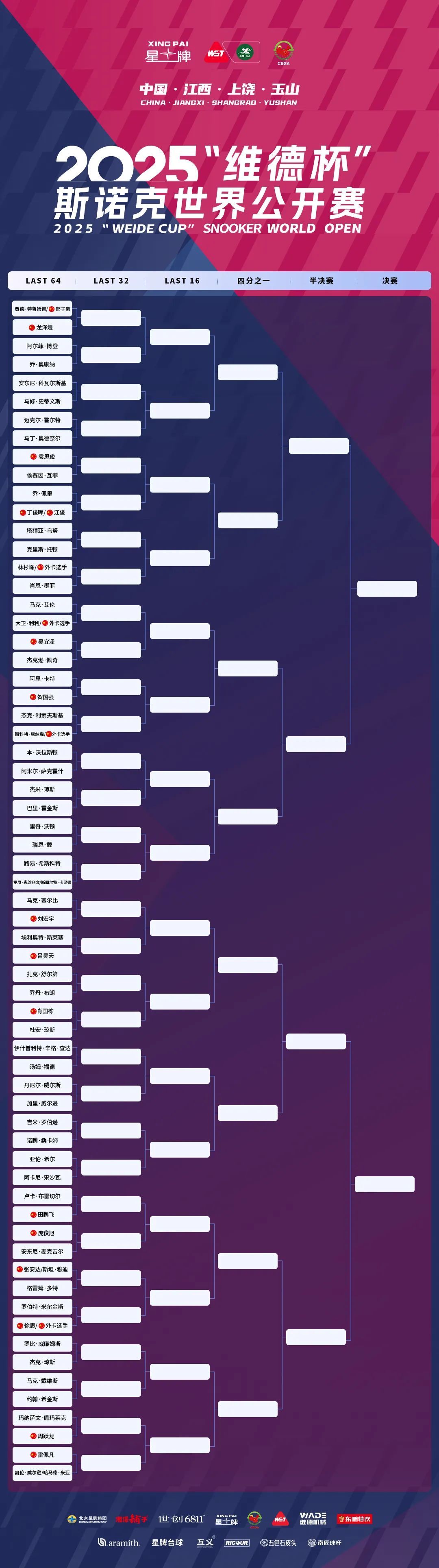 中国·江西·上饶·玉山2025“维德杯”斯诺克世界公开赛将于2月23日-3月1日进行。根据赛程,丁俊晖、特鲁姆普等明星球员将于2月23日上演玉山首秀。