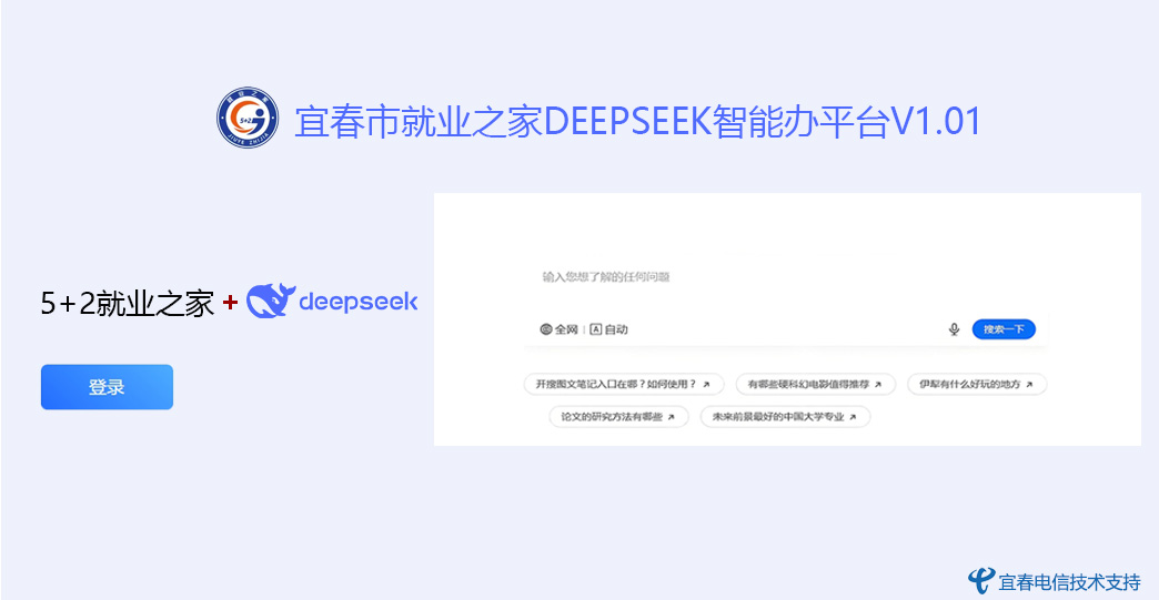 2月21日,宜春市就业之家正式完成DeepSeek人工智能平台的本地化部署。此举将进一步提升全市就业服务的智能化水平,为求职者和用人单位提供更加精准、高效的服务支持。