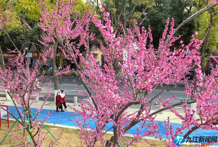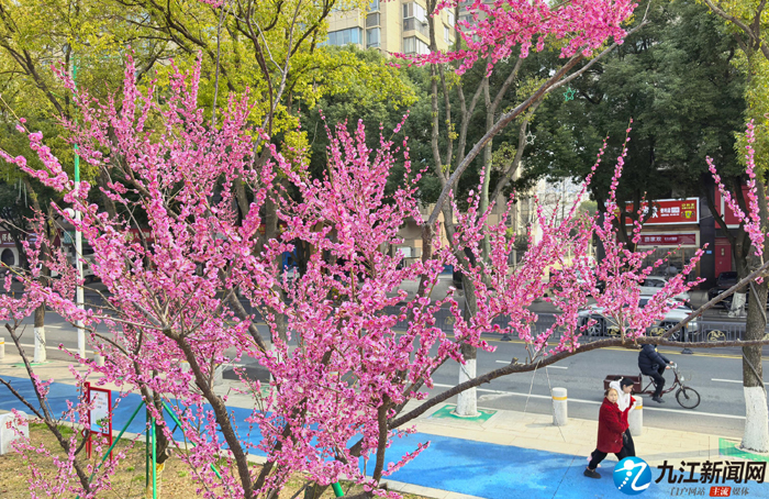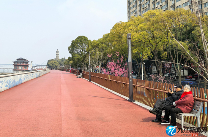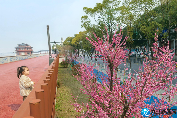 2月23日,长江国家文化公园九江城区段,绿叶出新、春花烂漫,早春二月的浔阳江畔可谓处处春意盎然。