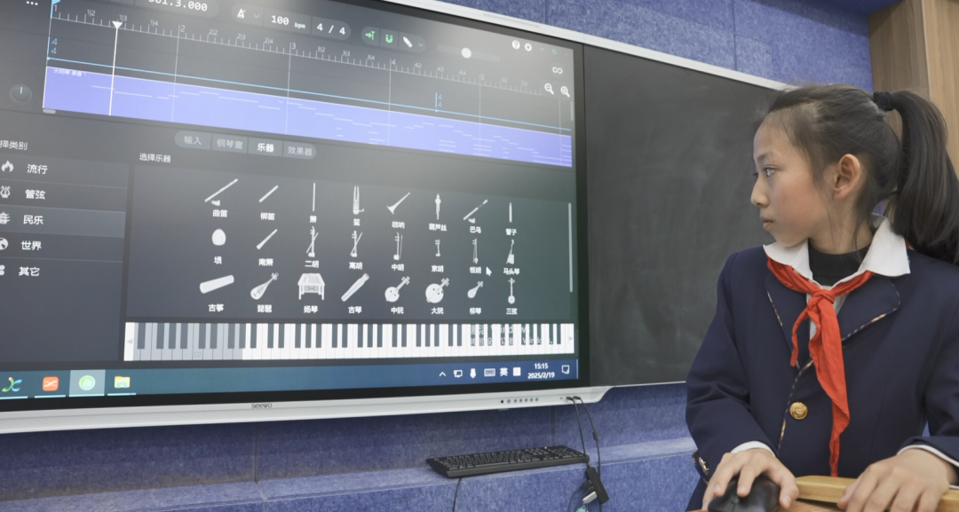 为了让学生们更好地进入诗歌所营造的氛围中,在五年级的音乐课上,音乐老师让大家根据对庐山诗歌的理解,鼓励学生用AI软件来创作歌曲,一首独具特色、能表达自己意图的歌曲“横空出世”,让同学们兴奋不已。