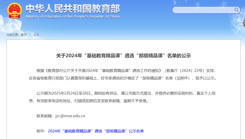 根据《教育部办公厅关于开展2024年“基础教育精品课”遴选工作的通知》(教基厅〔2024〕22号)安排,在各省级教育行政部门认真推荐的基础上,经专家遴选初步确定了“部级精品课”名单,日前,教育部官网公示了该名单,我省共有109门学科课程类、20门实验教学类、14门特殊教育类课程入选。一起来看↓↓↓