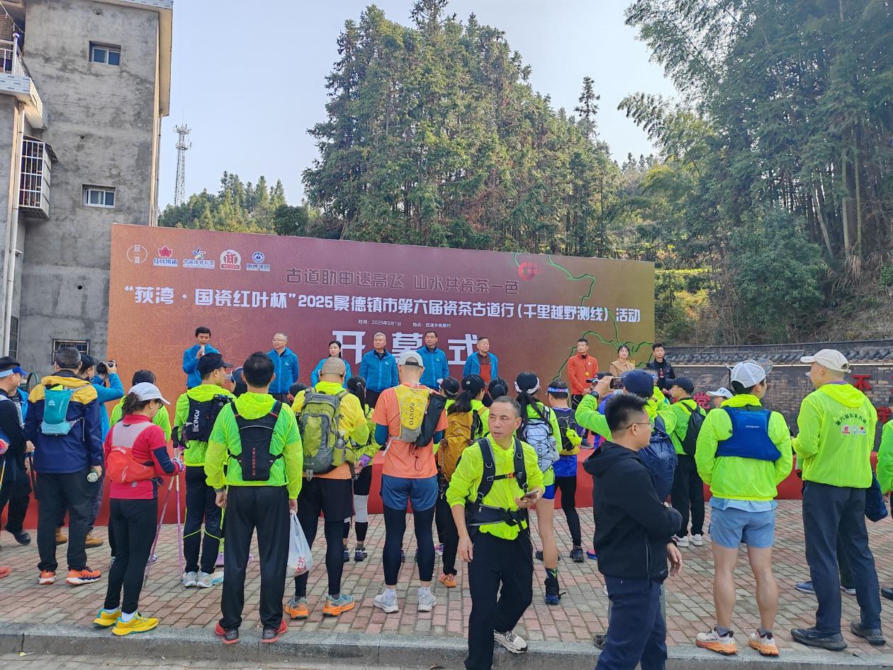 3月1日上午,一场串联瓷茶文化、自然山水与红色记忆的越野盛典——“荻湾·国瓷红叶杯”2025景德镇市第六届瓷茶古道行(千里越野测线)活动在浮梁县桃墅村拉开帷幕。此次活动以“古道助申遗高飞,山水共瓷茶一色”为主题,全程414公里的超长赛道,横跨浮梁全域乡镇,并延伸至安徽东至、祁门、休宁及江西婺源等省县,打造了一场融合极限挑战与文化沉浸的深度体验。