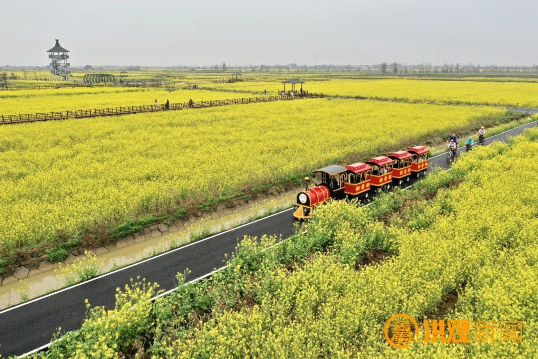 昌东镇的层林房油菜观赏点是南昌高新区重点打造的油菜示范点,位于鲤鱼洲大道旁。为让游客拥有更好的观赏体验,南昌高新区贴心地在此处搭建了观赏平台,登上平台,目之所及,是大片金灿灿的油菜花在春风中摇曳生姿。