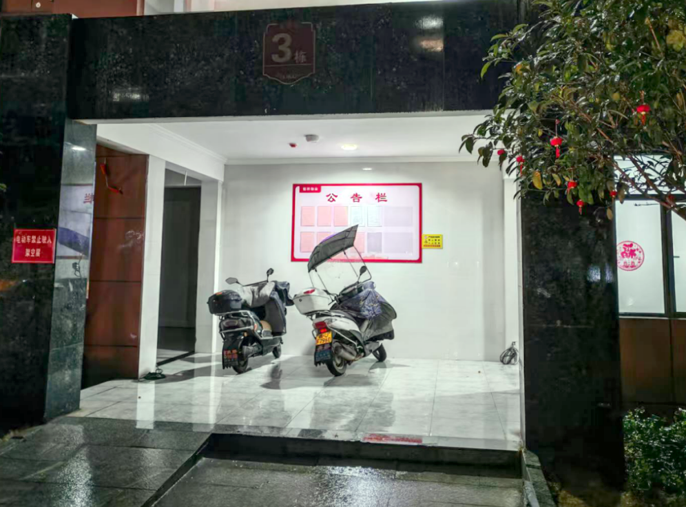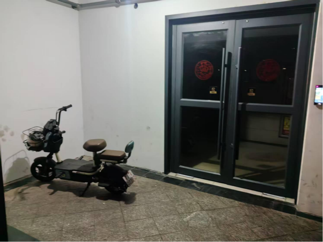 存在隐患:电动自行车违规停放、堵塞疏散通道
