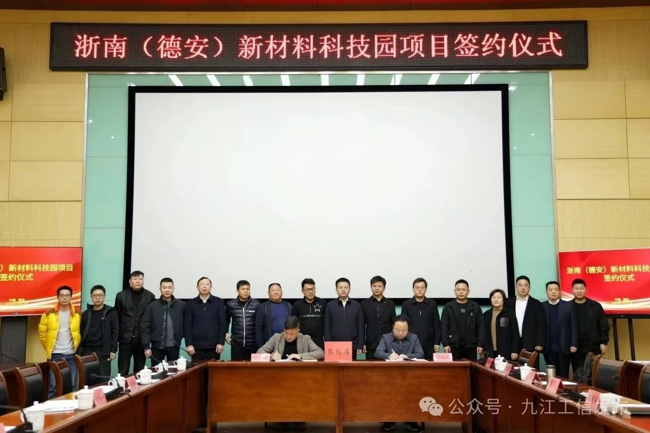 九江新闻网讯(曾俊杰 九江日报全媒记者 朱曦薇)近日,由市工信局主导引进的合成革新材料科技园项目在德安县成功签约。该项目总投资51亿元,是市工信局深入实施“9610”工程,聚焦新材料产业延链补链强链、推动县域经济高质量发展的又一重要成果。