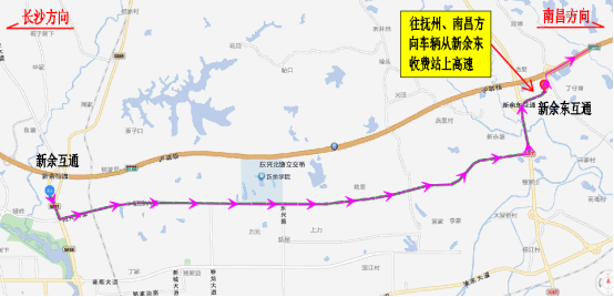 方案:车辆从新余收费站出发→阳光大道→新余东收费站上高速→G60沪昆高速南昌方向。