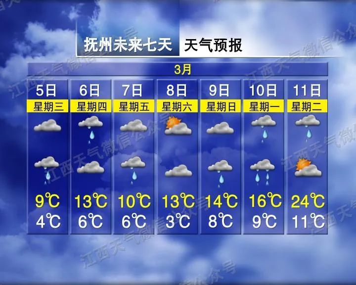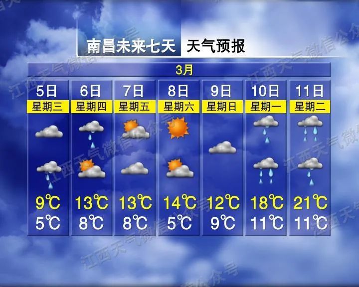 白天全省阴天多云。晚上赣中、赣南阴天,大部分地区有阵雨;赣北阴天多云,局部地区有阵雨。