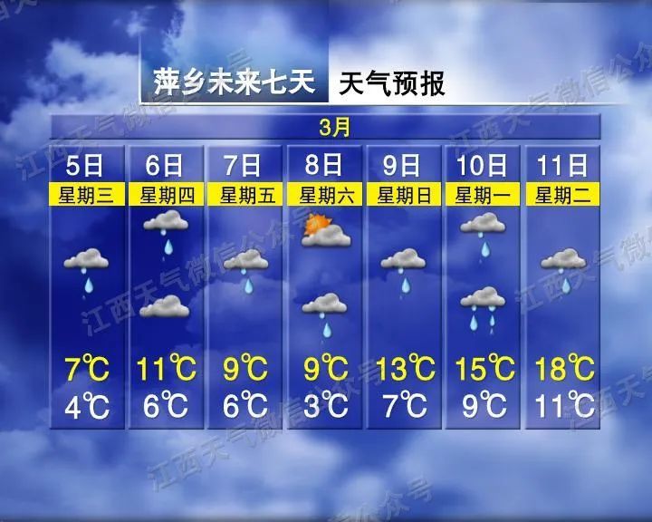 赣南阴天有阵雨或雷阵雨,部分地区有中雨;赣北、赣中阴天,大部分地区有阵雨,局地有雷雨。
