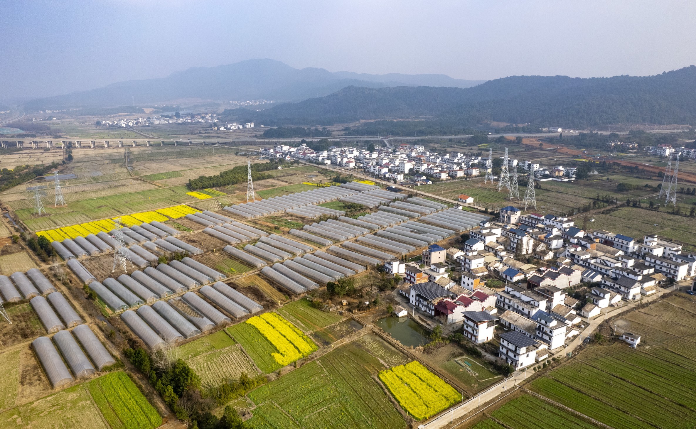 早春时节,大地渐渐披上“春装”。在仙女湖区观巢镇汉泉村,油菜花、大棚、山峦和村庄相映成景,构成一幅生机勃勃的春日画卷。本报记者 凌厚祥摄