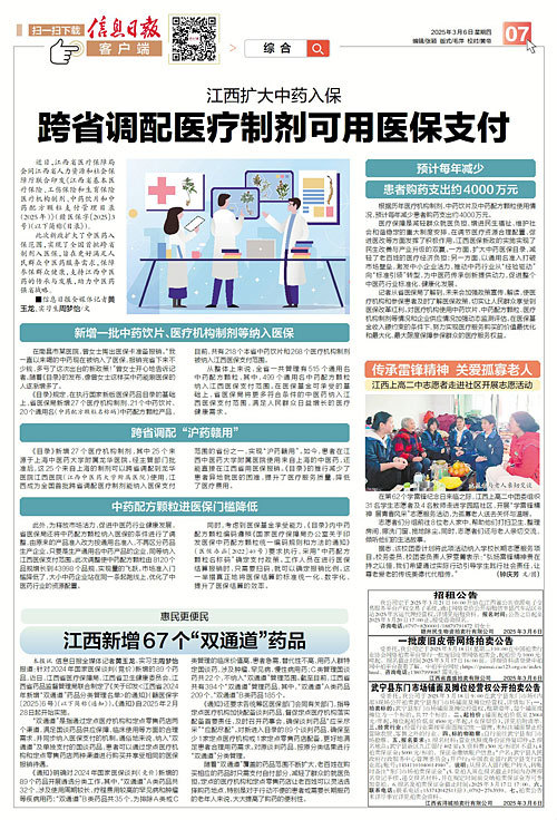 此次新政扩大了中医药入保范围,实现了全国首批跨省制剂入医保,旨在更好满足人民群众中医药服务需求,保障参保群众健康,支持江西中医药的传承与发展,助力中医药强省战略。