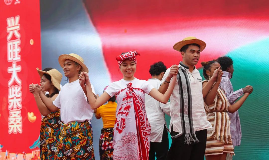 庙会开幕式上,一曲京韵大鼓余音未落,留学生们带来的马达加斯加风情舞瞬间点燃全场。舞者们以明快的节奏、灵动的身姿,展现着非洲大地的热情与生命力,与九江山歌形成奇妙共鸣。“我们想用舞蹈传递家乡的文化,也惊叹于中国非遗的深厚底蕴!”来自马达加斯加的留学生激动地说道。台下观众掌声雷动,游客王先生说:“没想到在家门口就能看到世界的风景,这是真正的‘妙不可言’!”