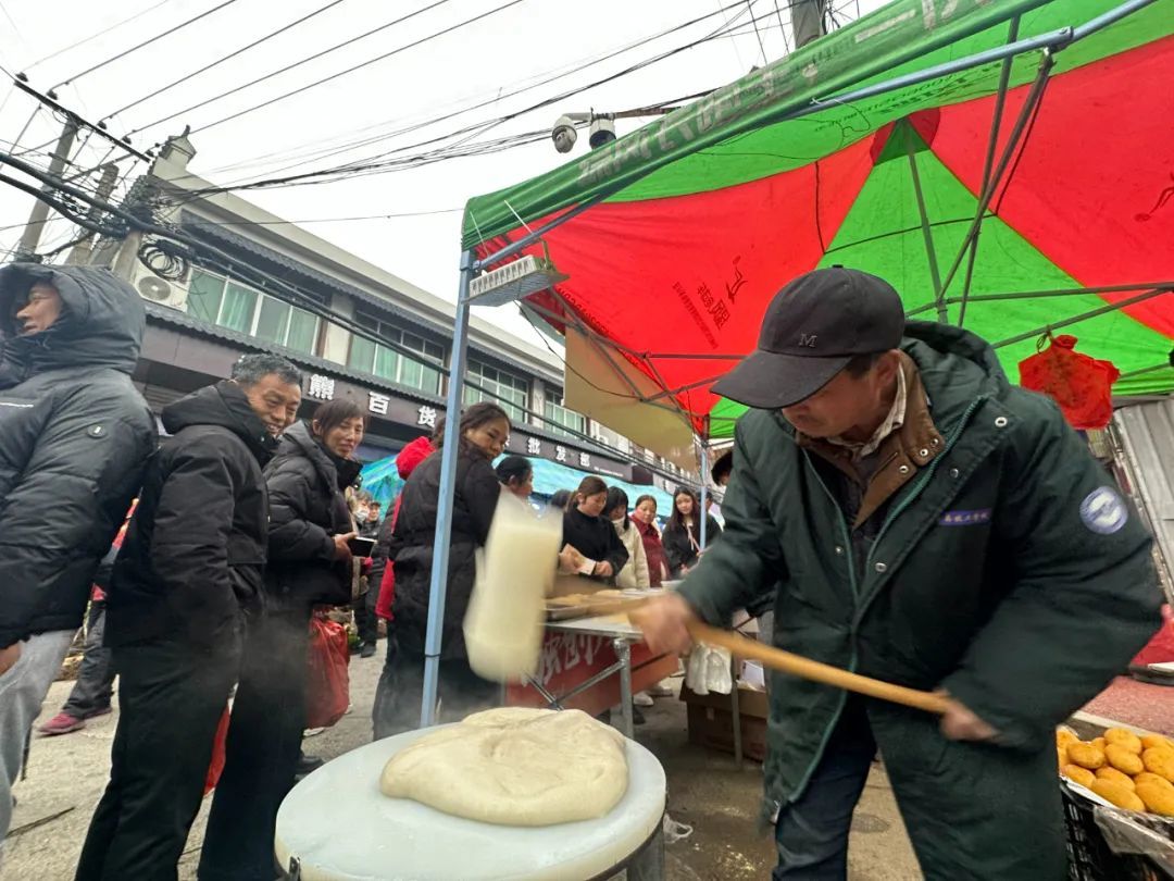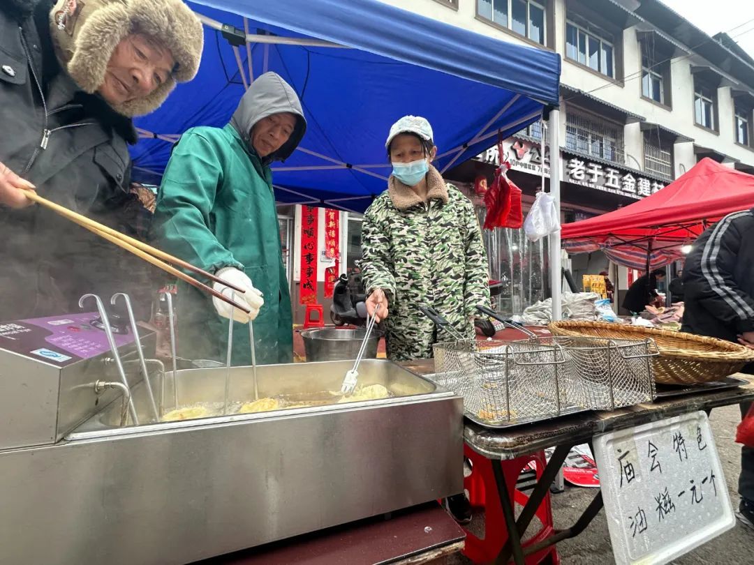 留学生们手持集章卡穿梭于庙会各个角落,在非遗手工艺市集学习竹编技艺,在荞麦岭遗址群触摸来自千年前的陶片。美食区更是成为他们的“打卡圣地”,从手工麻糍到麻辣烫,留学生们一边品尝一边用手机记录,沉醉于街头小吃的千滋百味。“这里比我们家乡冷,但大家的热情让我特别开心!”来自马达加斯加的留学生宋妮娅裹紧外套,脸上却满是兴奋。街道两侧,手工麻糍、麻辣烫、糖葫芦等小吃香气扑鼻,留学生们一边品尝,一边用手机记录下“舌尖上的中国”。来自美国的外教李华举着刚买的三个手工挂件笑道:“摊主说原价三十,我给了二十五,这砍价的乐趣可太‘中国’了!”