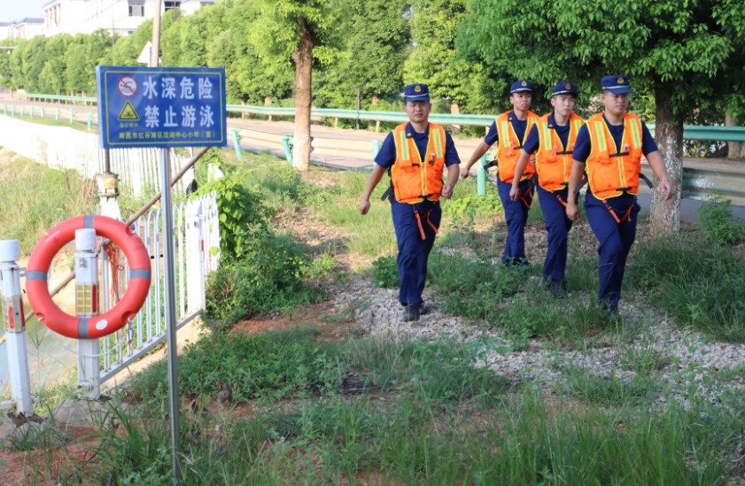 每到暑期,大队联合社区志愿者组建“防溺水巡逻队”,从建军雕塑广场出发,沿江而行,至秋水广场,对3.6公里范围内的重点水域和事故多发区域进行巡查,劝导群众不要去危险水域游泳戏耍;