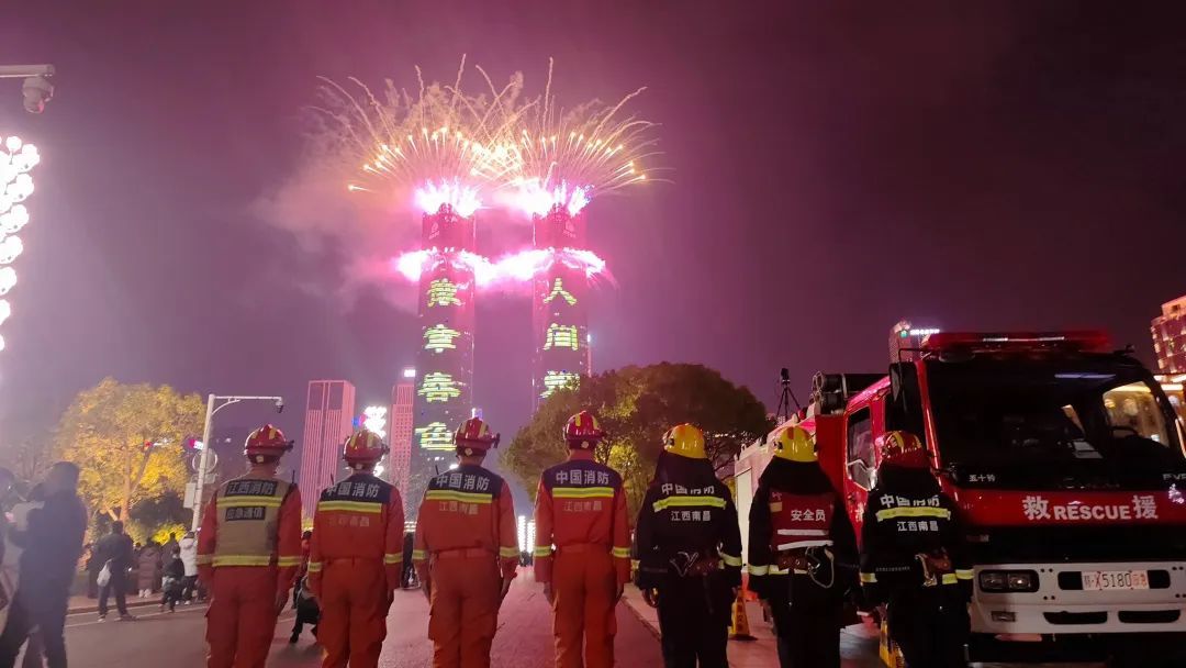 大队在2025大年初一南昌烟花晚会中执勤。
