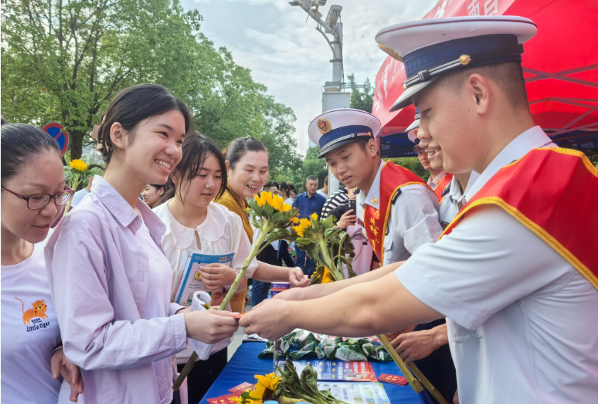 每逢中、高考,红谷滩区消防救援大队的“护考模式”准时开启,他们在辖区考点设立“红先锋”爱心助考便民服务站,包含美好寓意的向日葵、粽子等整齐摆放,桌椅和西瓜、消暑药品等一应俱全;