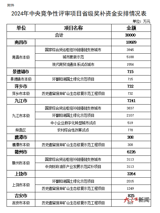 大江网/大江新闻客户端讯 全媒体记者陈春伟报道:3月6日,记者从省财政厅了解到,该厅于日前下达2024年中央竞争性评审项目省级奖补资金3亿元,较上年增加1亿元,支持和引导各地各部门申报和争取中央竞争性评审项目,着力减轻地方资金配套压力,推动项目加快落地。