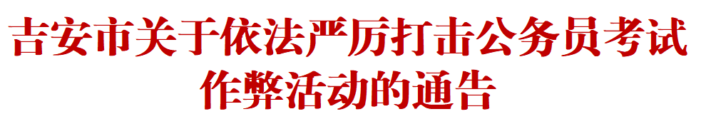 为确保江西省2025年度公务员录用考试安全有序进行,根据《中华人民共和国刑法》《最高人民法院 最高人民检察院关于办理组织考试作弊等刑事案件适用法律若干问题的解释》《公务员录用违规违纪行为处理办法》的相关规定,决定自即日起在全市范围内开展查处和打击破坏公务员录用考试秩序等违法犯罪活动专项行动。现将有关事项通告如下: