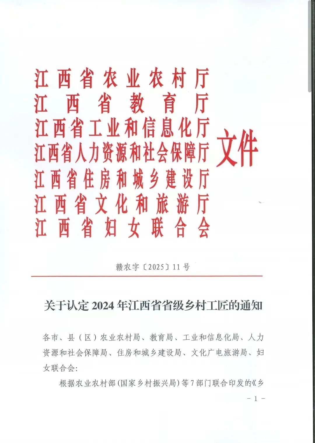 认定罗海平等34名乡村工匠为2024年江西省省级乡村工匠